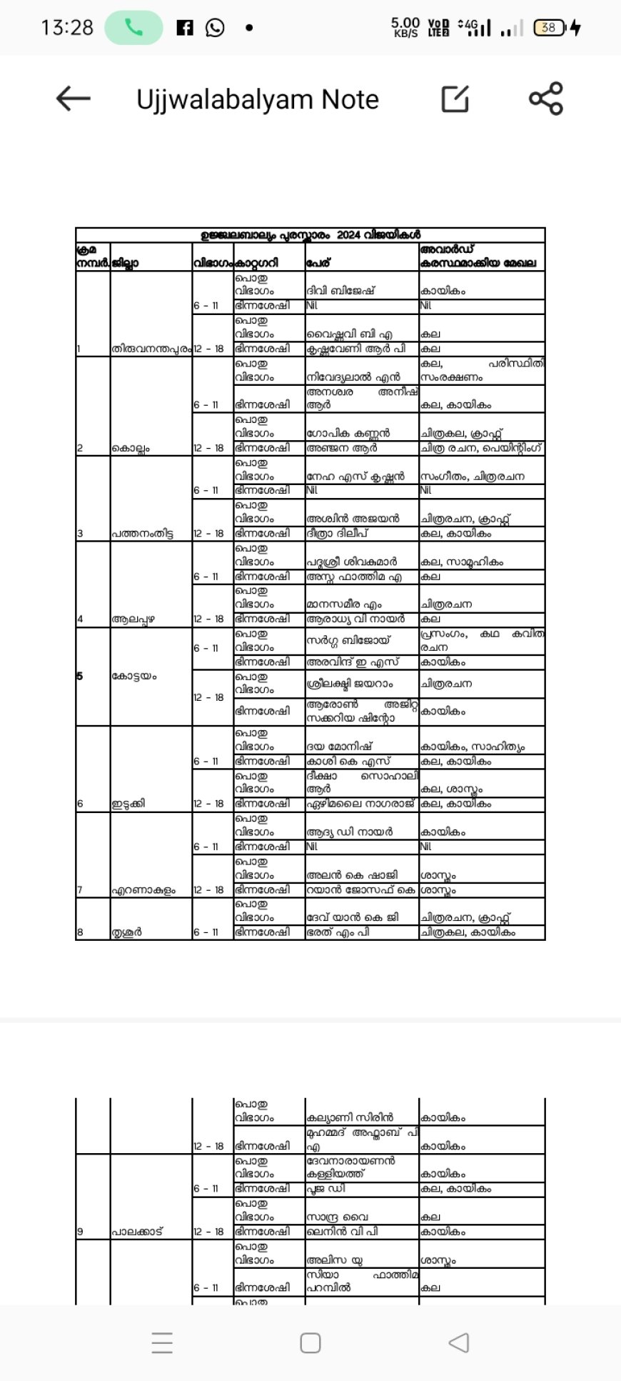 *ഉജ്ജ്വലബാല്യം പുരസ്കാരം 2024 പ്രഖ്യാപിച്ചു*